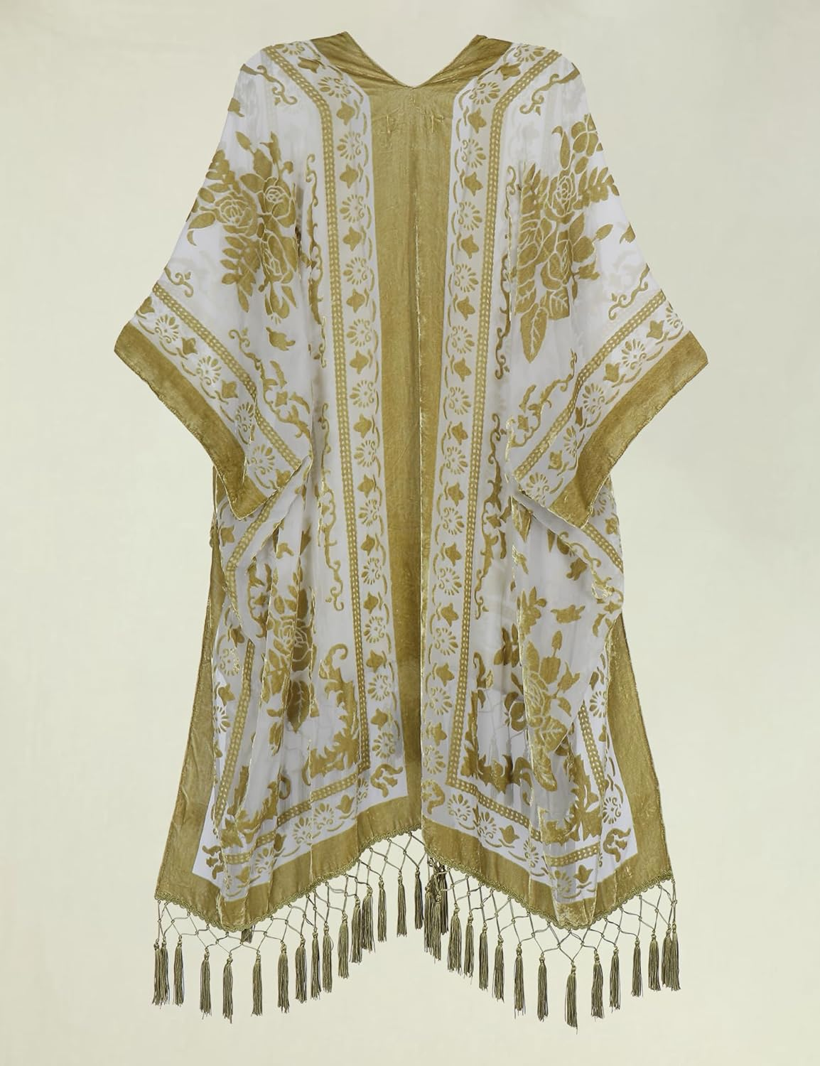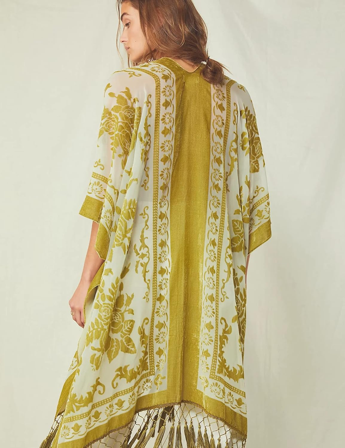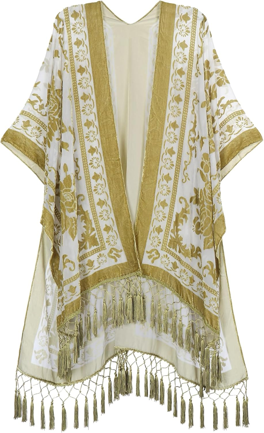 Elevate your layering game with the Bohemian Breeze Fringe Kimono — a delicate blend of vintage-inspired elegance and breezy comfort. Whether you're dressing up a simple outfit or adding a graceful touch to an evening look, this kimono flows beautifully and adds flair with its rich texture and fringe detailing.