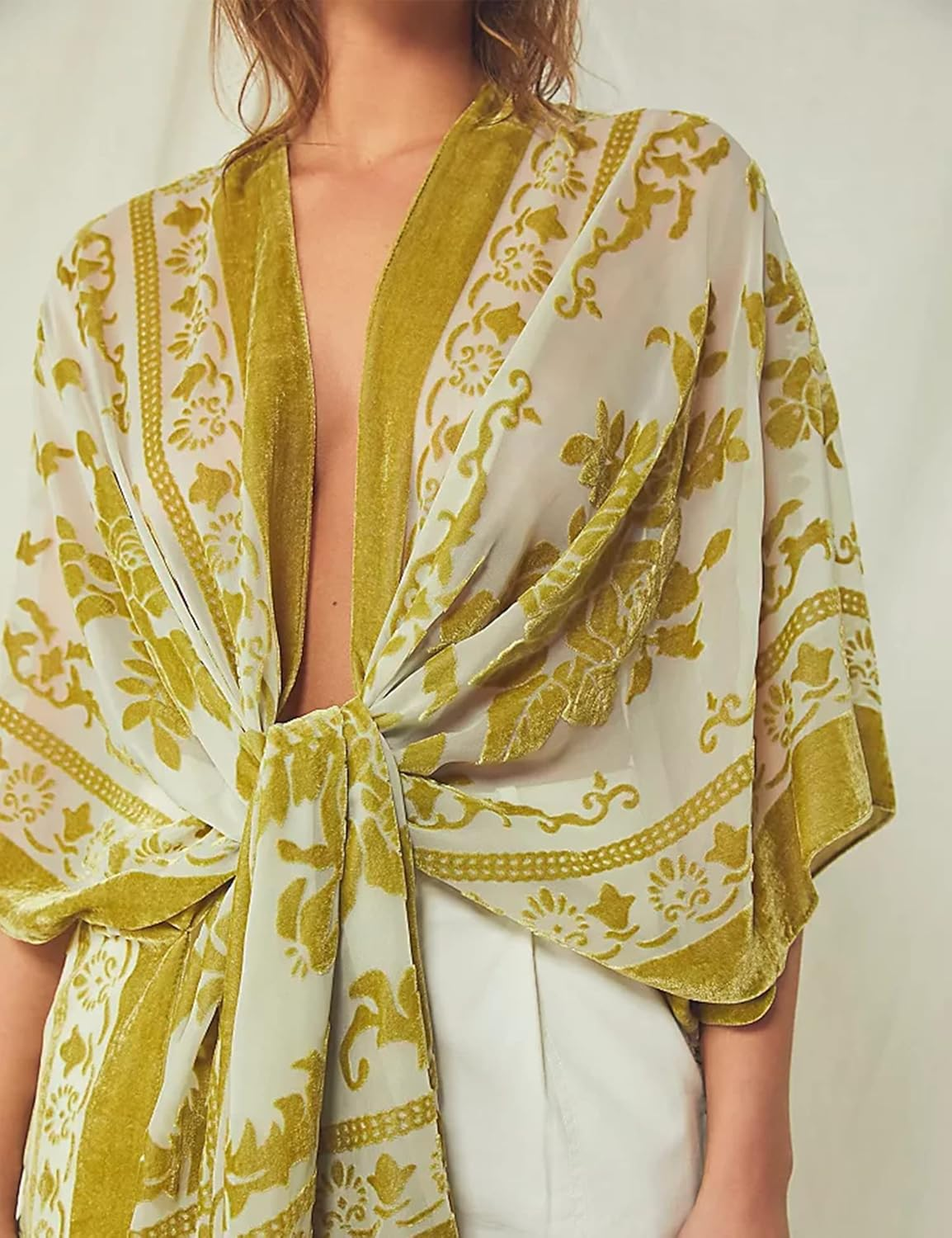 • Material: Sheer chiffon with velvet burnout